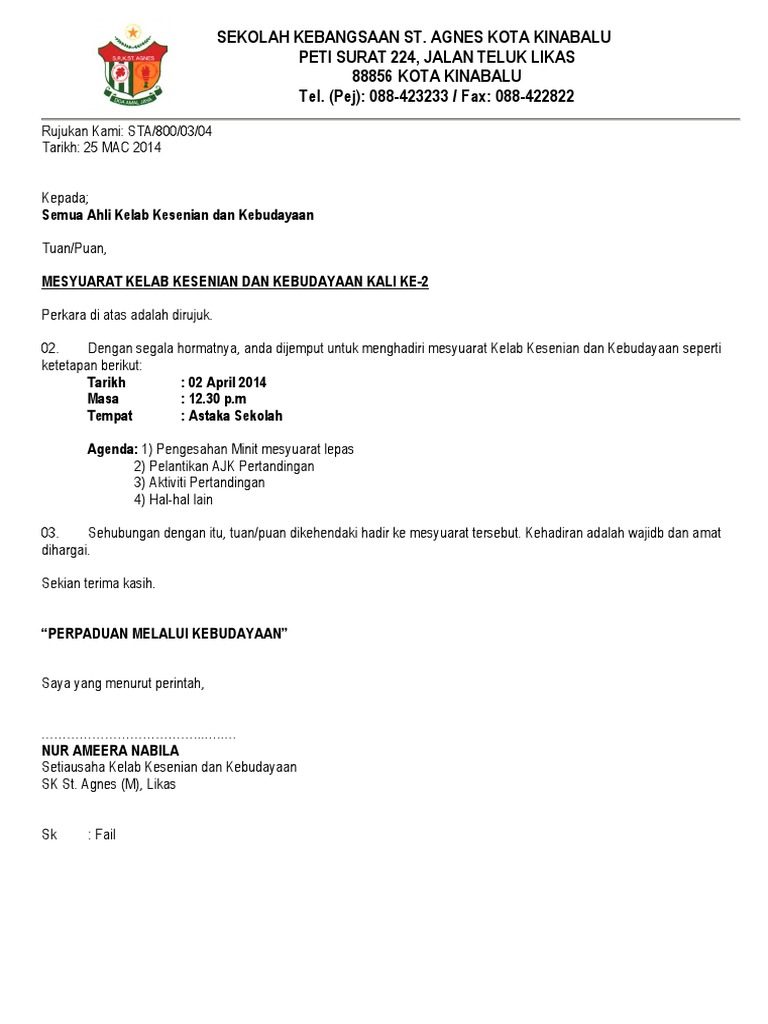Contoh Surat Jemputan Mesyuarat Pdf