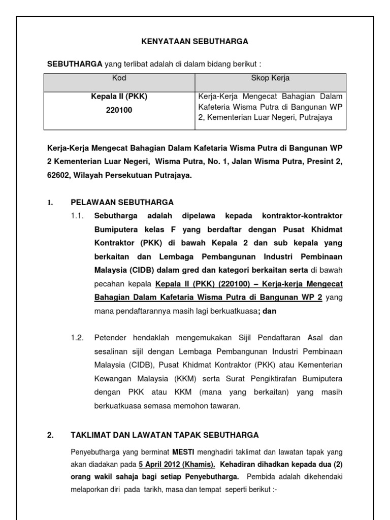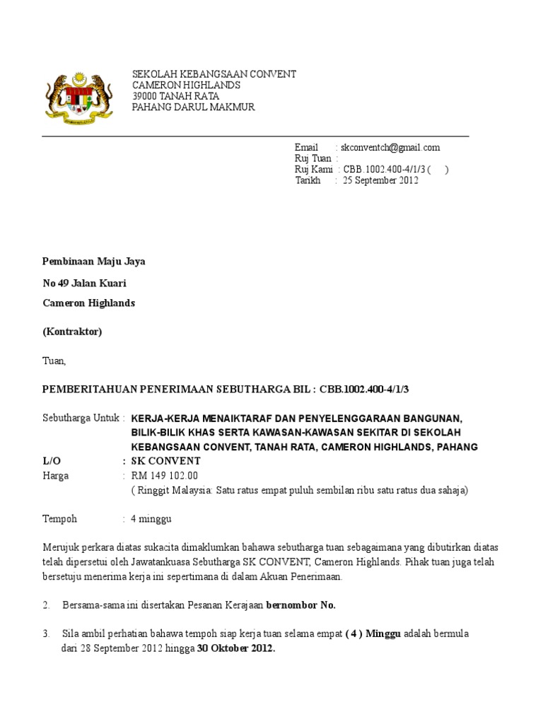 Contoh Surat Sebut Harga Projek Letter 7saudara Com